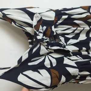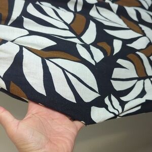 Great summer dress for many occasions in a neutral tropical print of linen & rayon.