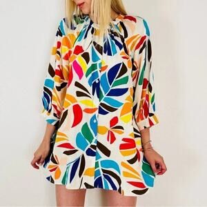 Tabitha Brown Botanical Print Puff Sleeve Mini Tunic Dress – Size S