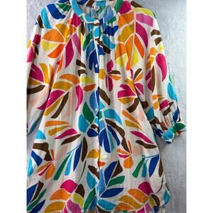 Bright, joyful, and full of personality—this Tabitha Brown botanical print tunic dress features vibrant multicolor leaf patterns, playful puff sleeves, and an easy, relaxed silhouette. Wear it as a mini dress, tunic, or beach cover-up for a bold, expressive look.