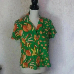 Tabitha Brown Leopard Orange Print Linen Blend Collared Shirt for Target Small 213