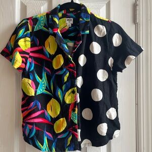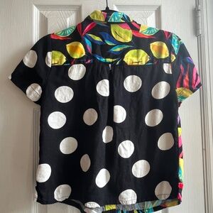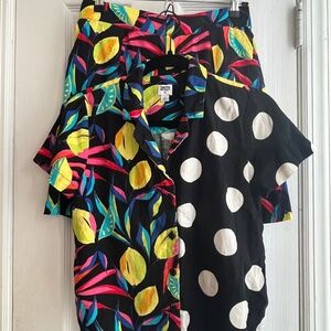 This button down top and shorts set from Target’s Tabitha Brown collection is perfect for a vacation! Both pieces feature a black linen-y material and a beautiful tropical lemon pattern (with some black and white polka dots for contrast). It’s in good used condition.