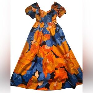 Tabitha Brown Target Vibrant Orange & Blue Floral Dress Puff Sleeve Dress Size 4