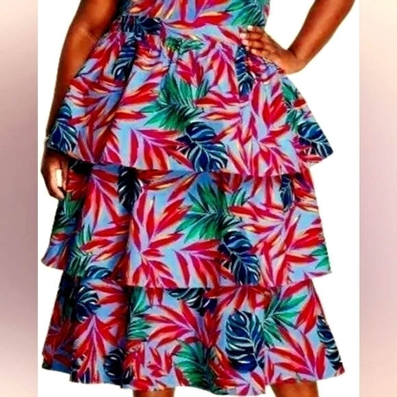 Tabitha Brown X Target 100% Cotton Tiered Tropical Print Skirt in Blue & Red-1X