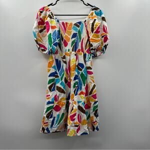 Tabitha Brown for Target Linen Blend Botanical Puff Sleeve Mini Dress Sz XS
