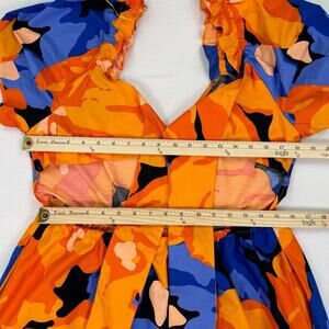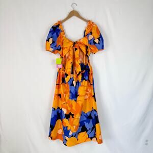 Tabitha Brown for Target Women's Puff Sleeve Tie Back Dress Size 14 Orange Blue