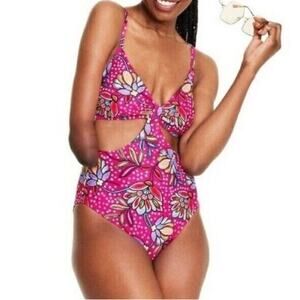 Tabitha Brown x Target Pink Floral One Piece Cutout Swimsuit Swim Suit XXS new