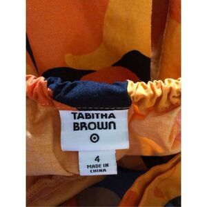 Tabitha Brown Tropical Floral Print Puff Sleeve Tie-Back Midi Dress SZ 4