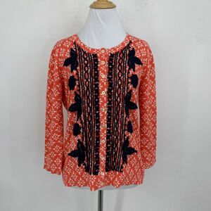 Tabitha Cardigan Women's Size M Embroidered Yarn Floral Knit 3/4 Sleeves Button