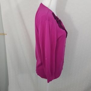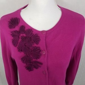 Elegant pink cardigan. Features floral embellishments. Perfect for layering.