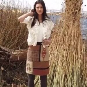 Tabitha Simmons Brown and Red Pencil Skirt Knee-Length Casual. B4