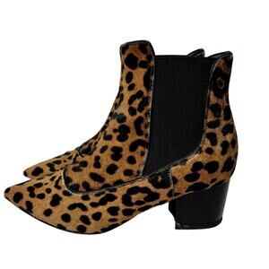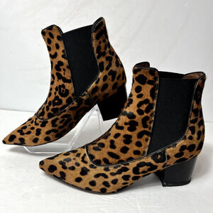 Tabitha Simmons Chelsea Boots Womens 7 Shadow Leopard Print Calf Hair Brown