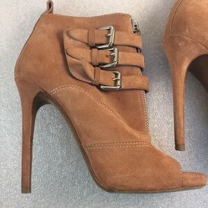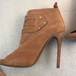 👠 Tabitha Simmons “Eva” Suede Peep-Toe Booties