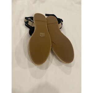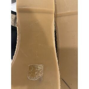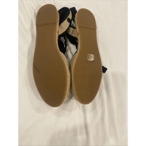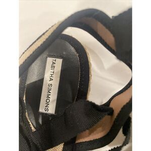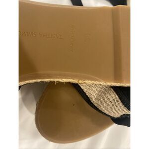 Tabitha Simmons Linen Ankle Wrap Flat Sandals in size EU 39/US 8 . The sandals seem to run small and are narrow. Toe to heel drop is 10 inches . Features a tan/khaki color in linen with black ankle wrap straps. Made with linen upper material and canvas lining.