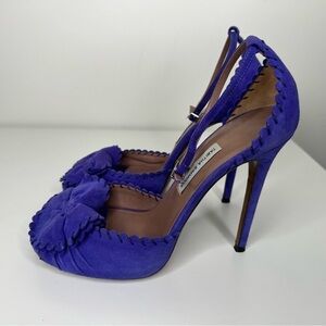 Elevate your footwear collection with these exquisite Tabitha Simmons d'Orsay pumps! Crafted from luxurious suede and featuring intricate whipstitch trim, these pumps exude sophistication and timeless elegance.