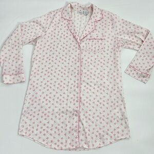 Tabitha Webb Soft Girl valentine satin button down satin sleep shirt heart print. Very preppy coquette girl aesthetic. Collared gorpcore style sleep shirt. Soft pink and white loungewear. No flaws in excellent pre-owned condition.