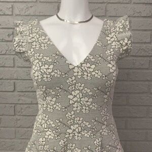 Tabitha Women Gray Textured Floral Cap Sleeve Tea Dress With Pockets Size 2