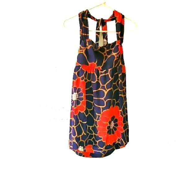 Tabitha by Anthropologie 100% silk halter blouse with red poppy print Size 0