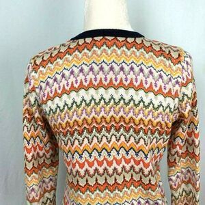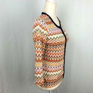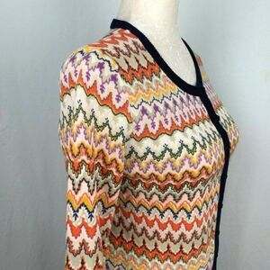 Tabitha Anthropologie Cardigan Sweater M Orange Blue Button Down 100% Cotton