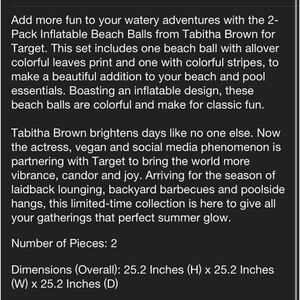 Tabitha Brown Beach Ball Set NWT in package Size is 26.2 inches Includes set of 2 High reviews for item!