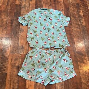 Tabitha Webb Santa Print Pajama Set - Light Blue S (5225C)