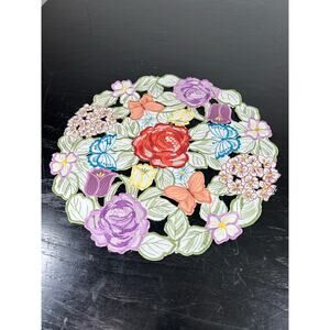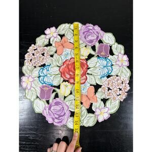 Table Covering- Round Bright Colors- 15" diameter- butterfly flowers- cottage
