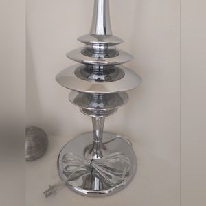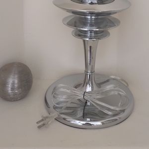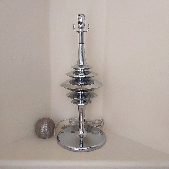 A modern, classic urn-shaped lamp body is given a modern and contemporary upgrade courtesy of a shimmering chrome finish—the stylish casual appeal.