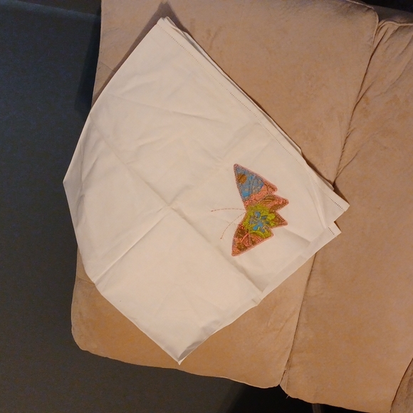 White Table Linen Butterfly Applicae on one corner 35" square