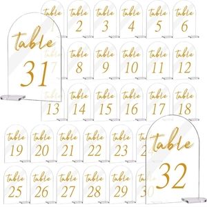 32 Sets Arch Wedding Table Numbers with Stands Acrylic Sign Gold Printed 1-32 Table Signs Clear Acrylic Wedding Display Signs Stand for Wedding Reception Party Centerpieces Decor (4 x 6 Inch)