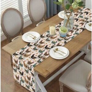 Table Runner 13x90in Woven Polyester Chicken and Chicks Farmhouse Country