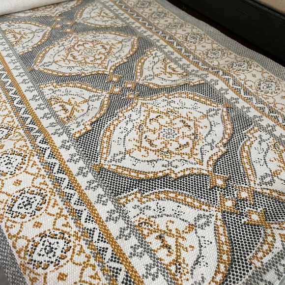 Yellow, white and grey woven table runner