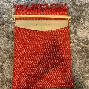 Brand new, dark orange with goldish silver strands throughout, fringe ends