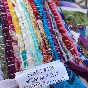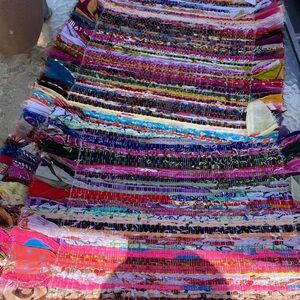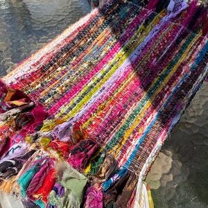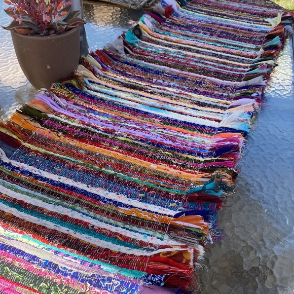 Beautiful and super fun table runner made from various recycled fabrics. Perfect for parties, fiestas, etc. Made in India. Approximately 6ft long by 1.5 ft across When rolled out