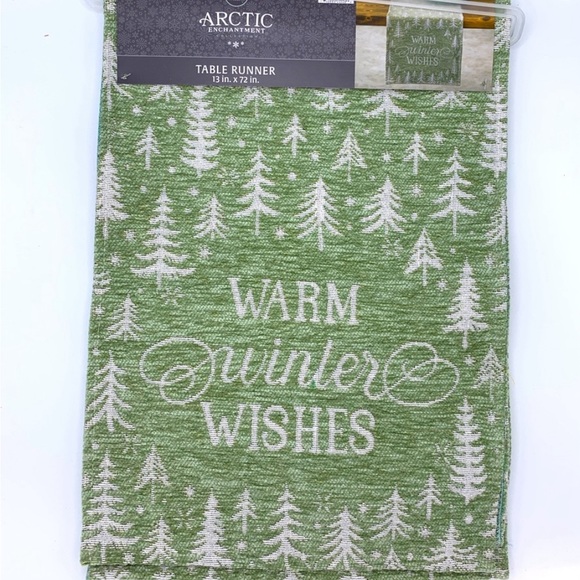 Winter Holiday Christmas Tree Warm Winter Wishes Table Runner Kitchen Dining Linens Seasonal