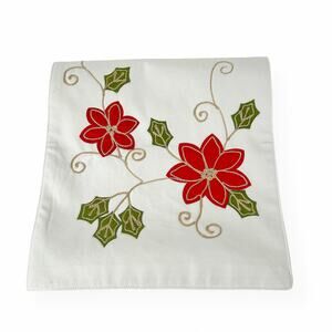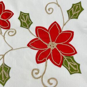 Table Runner Inspired Treasures White Red Poinsettia Applique Gold Sparkle 72x13