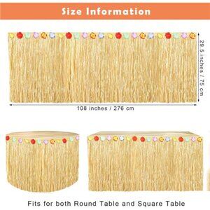 Table Skirt Natural 9 Feet x 29.5Inch Hawaiian Table Skirt for Tropical Hawaiian