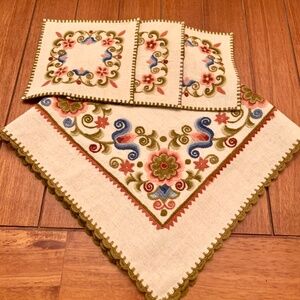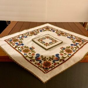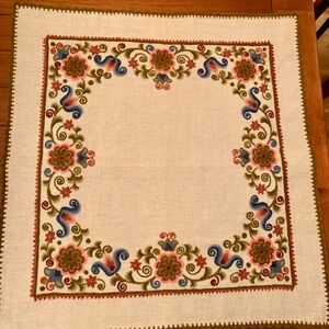 Richly hand embroidered with wool yarn on hemp linen from Hungary,