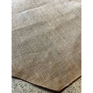 Woven natural color burlap fabric with red ribbon type trim