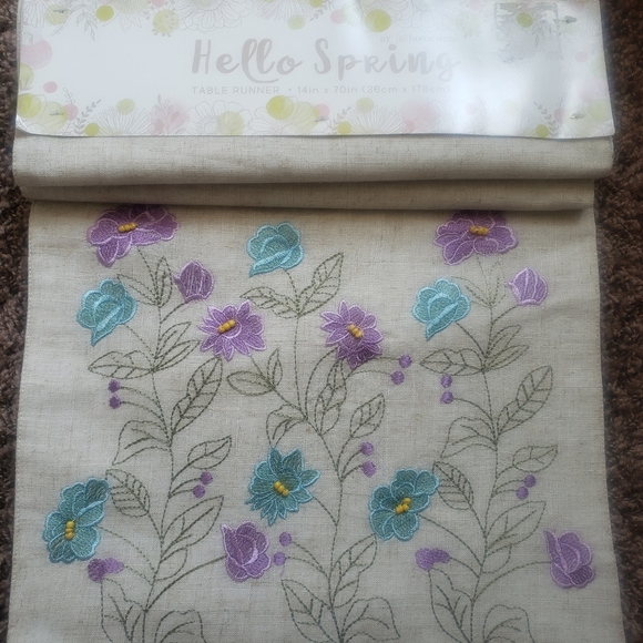 Brand new table runner with floral embroidery as seen in pictures no rips or stains