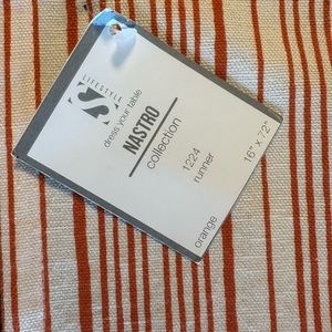16x72 table runner. Cream/orange stripes. Tag still on; never used smoke free home.