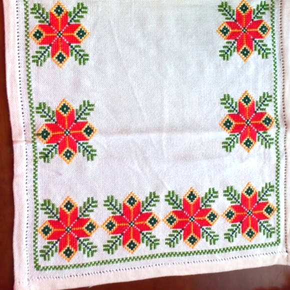 Beautifully hand stitched table runner. Ideal for Christmas. Length 22 and width 11 inches