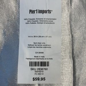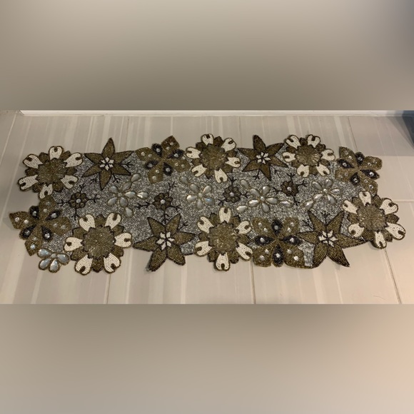 Pier one imports table runner. Beaded in silver, white and champagne floral design. Like new condition