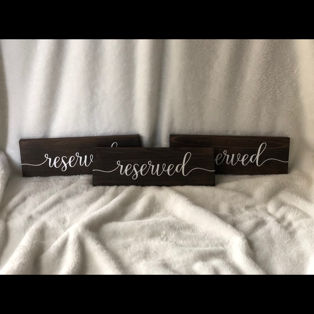 These table signs are perfect for weddings and make for easy set up. They stand on their own and don’t need anything else. Just sit them down and go! Reserved, guest book, favors, cards and gifts, and more available!