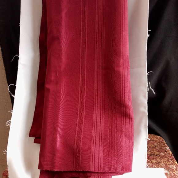 Maroon colored holiday tablecloth. tablecloth measures 71 inches wide and 188 inches long. tablecloth has no flaws.