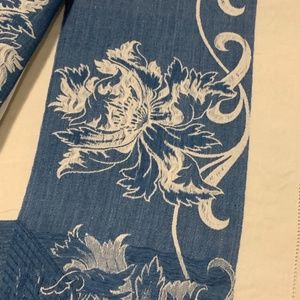 Antique from 1920’s damask white and blue tablecloth with floral design, Monogrammed MS.