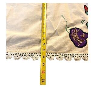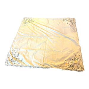 Tablecloth Morning Glory Flowers Floral Embroidered Square 62" Vintage Retro