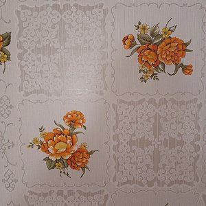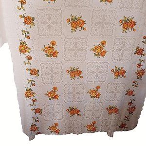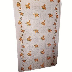 Tablecloth Orange Flowers Scalloped Rectangle Fall Spring Lacy Look