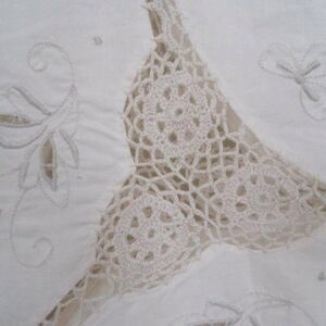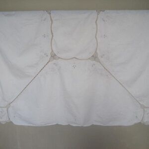 Tablecloth Bedspread Vintage Flowers Cottage Chic Crochet Trim W 63.5'' x L 79'' Ecru