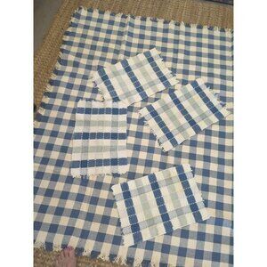 Tableclothw/ 4 Placemats Buffalo Check Country Blue White Fringed Square 58x58