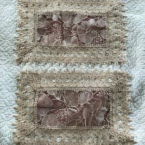 Table-runner Set Burgundy Gold Lace Floral Embroidery 3 piece Set Open Package