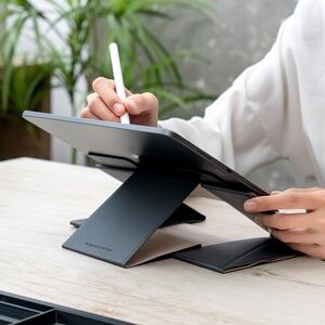 This Table Folio Stand includes a protection space for Apple Pencil, Folio Stand covers all the Apple Pencil and protect your Apple Pencil while charge it anytime, anywhere.